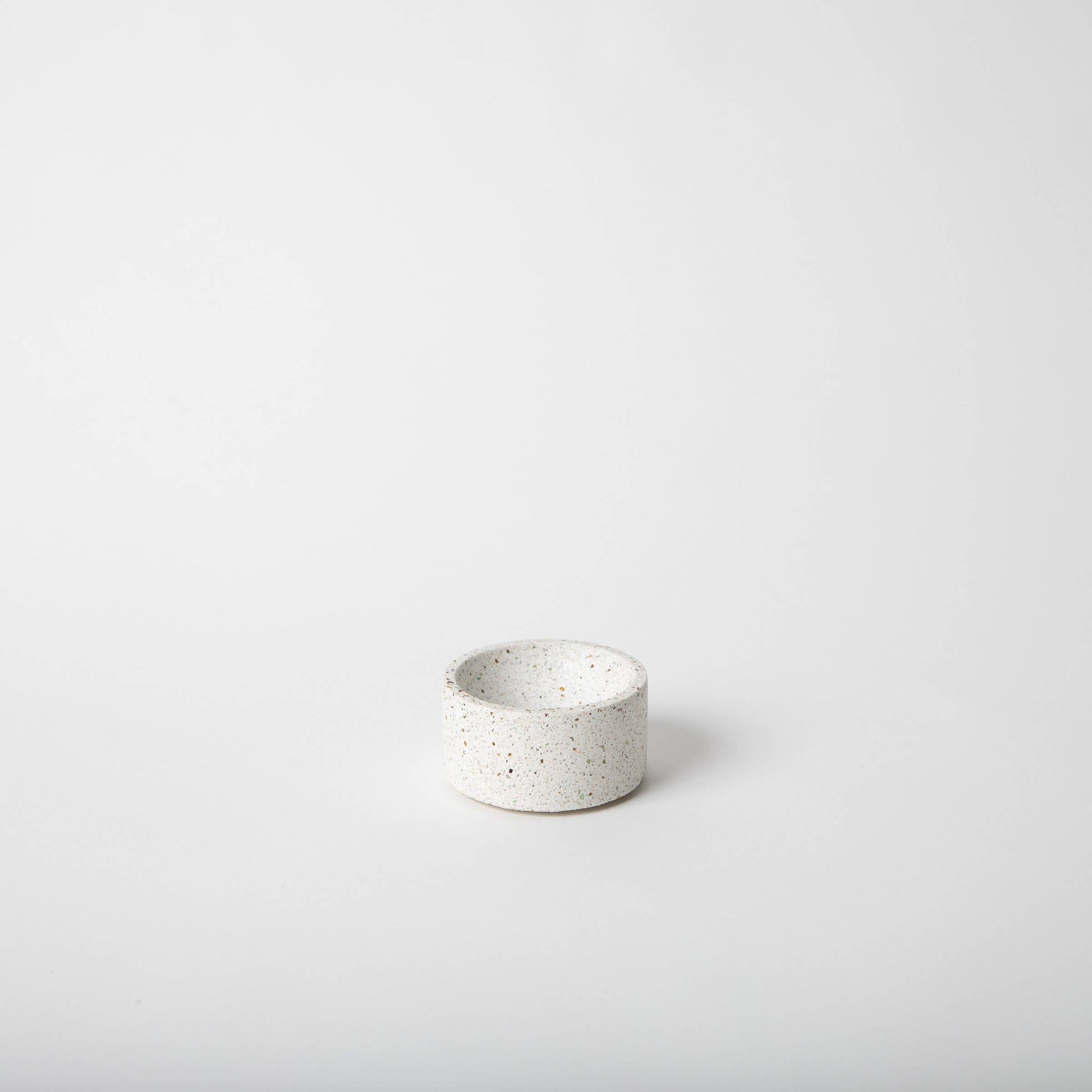 Materials: concrete & recycled glass w/ a cork base Dimensions: 2.375" w x 1.25" h Our concrete work is all individually hand cast from custom made rubber molds. Colors are integrally mixed into the concrete and results in each piece being unique.