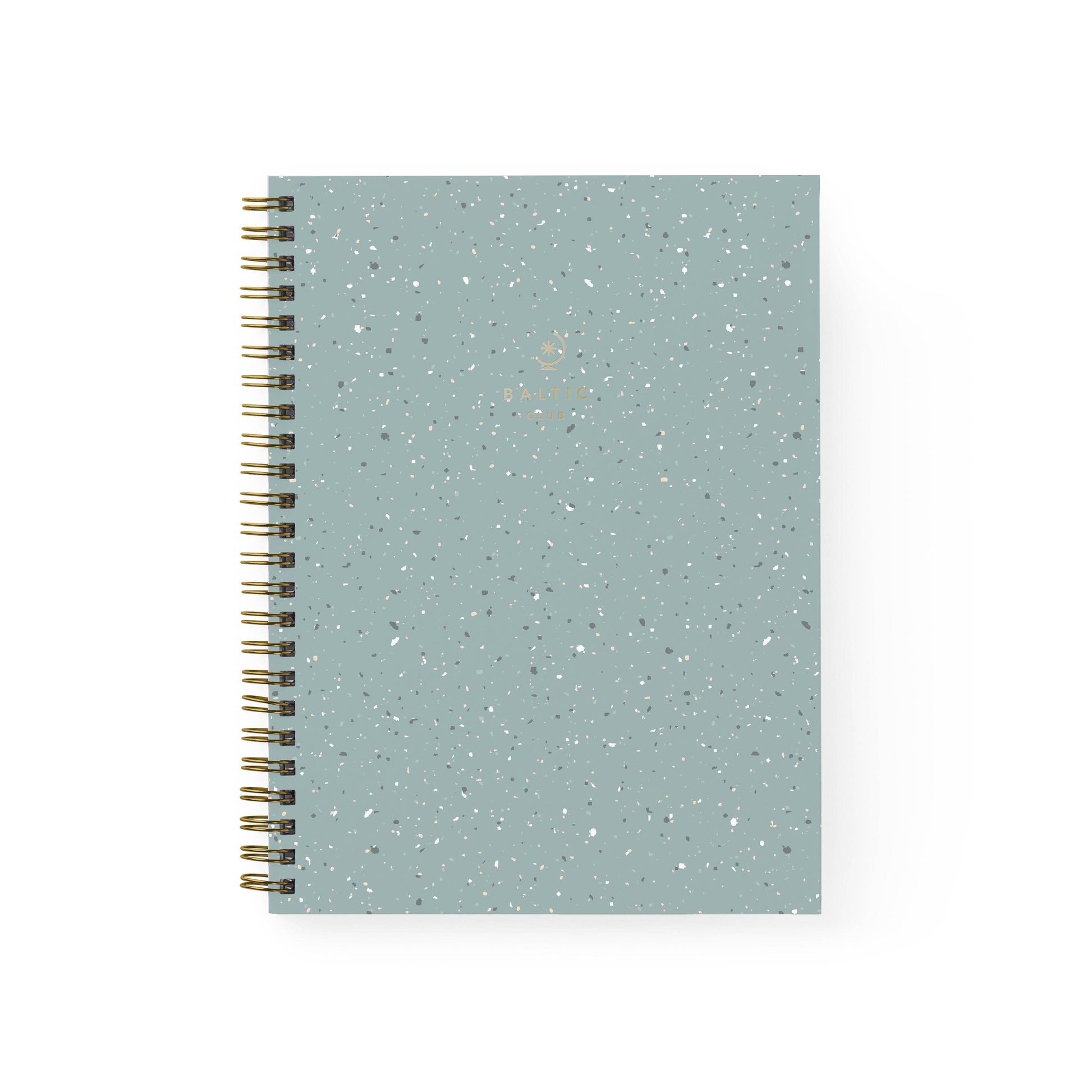 A minty Fresh look! Dimensions: 6" x 8" (152 mm x 203 mm) Binding: Gold spiral Wire-O Interior: 110 pages Cover: Matte Laminated Printed Cardstock Paper: FSC® certified and 100% recycled Designed and made by us in Montreal, Canada.
